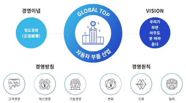 • 🚀 비전: 미래 모빌리티 산업을 선도하는 글로벌 자동차 부품 전문 기업