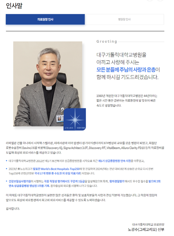- 핵심가치: 사랑, 섬김, 봉사 (가톨릭 정신 기반으로 환자와 지역사회에 헌신)
