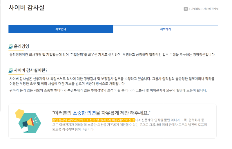 - ✔ 핵심가치: 윤리경영, 혁신추구, 고객중심, 사회공헌