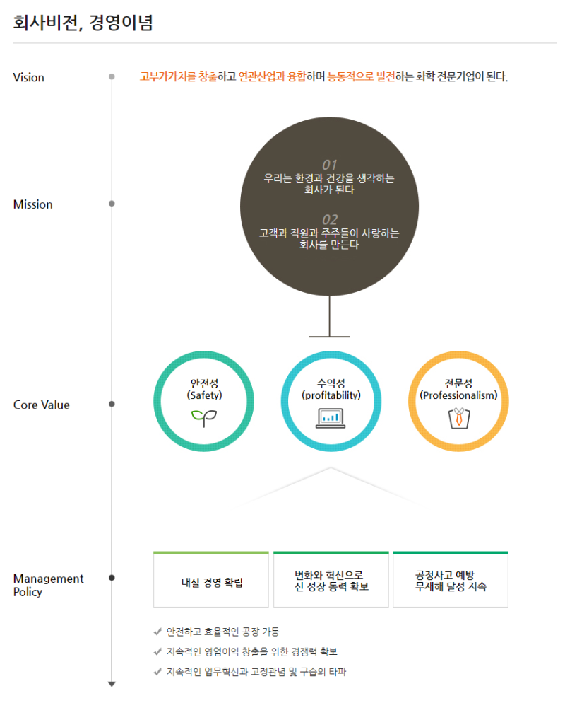 ✔️ 비전: 화학 산업의 새로운 지평을 열어 지속 가능한 미래를 선도하는 글로벌 선두 기업