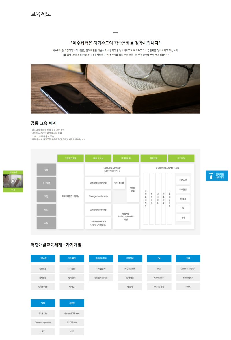 - 인재상: 변화와 혁신을 추구하며, 창의적인 사고로 미래를 개척하는 인재, 팀워크를 중요시하고 윤리적 가치를 존중하는 인재