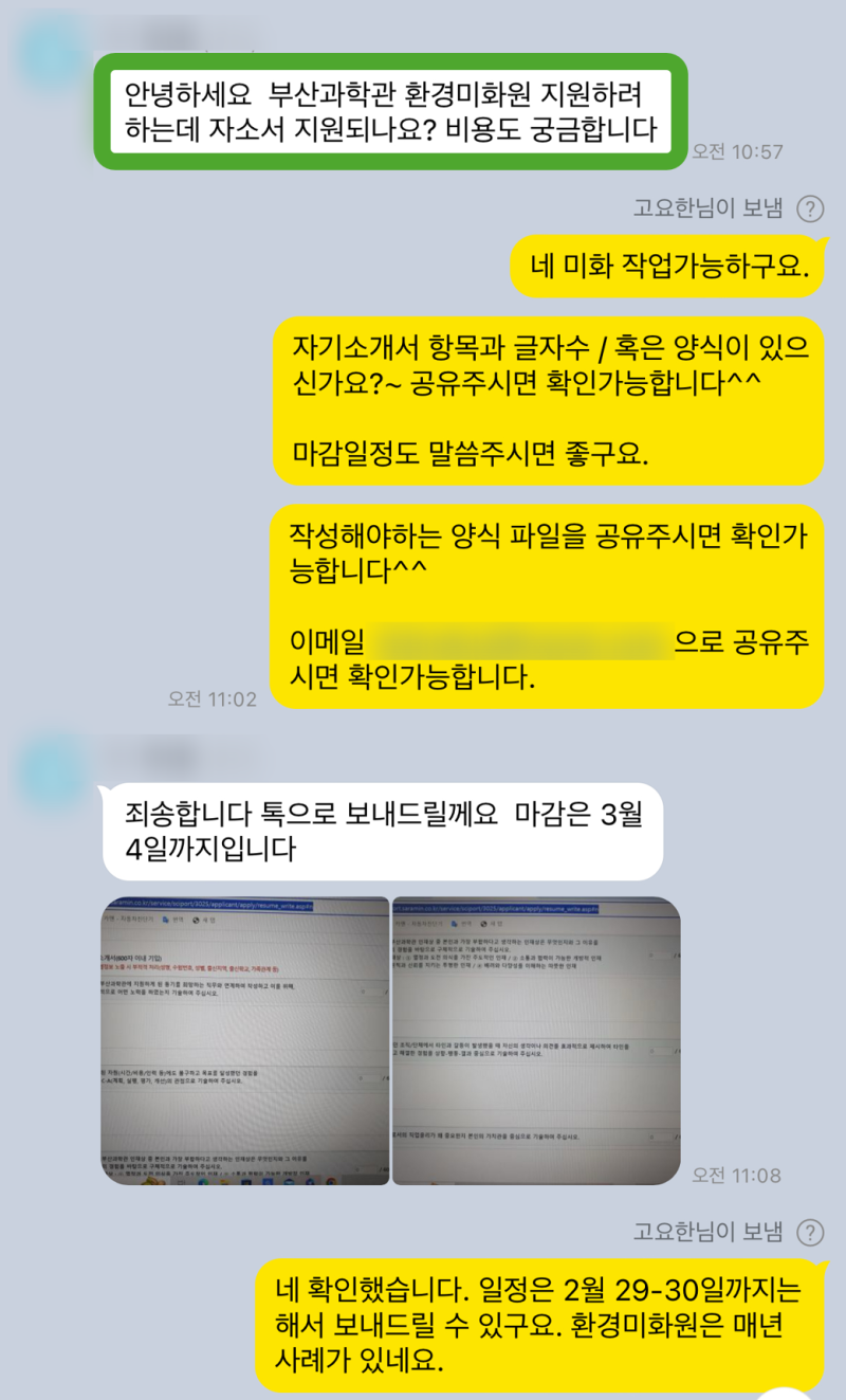 저의 자기소개서 컨설팅 서비스는 여러분의 강점을 극대화하고, 기업명과 지원 분야에 적합한 인재임을 어필할 수 있도록 맞춤형으로 진행됩니다. 단순히 문장을 수정하는 것을 넘어, 여러분의 경험과 역량을 스토리에 담아 설득력 있는 자기소개서를 완성할 수 있도록 돕겠습니다.