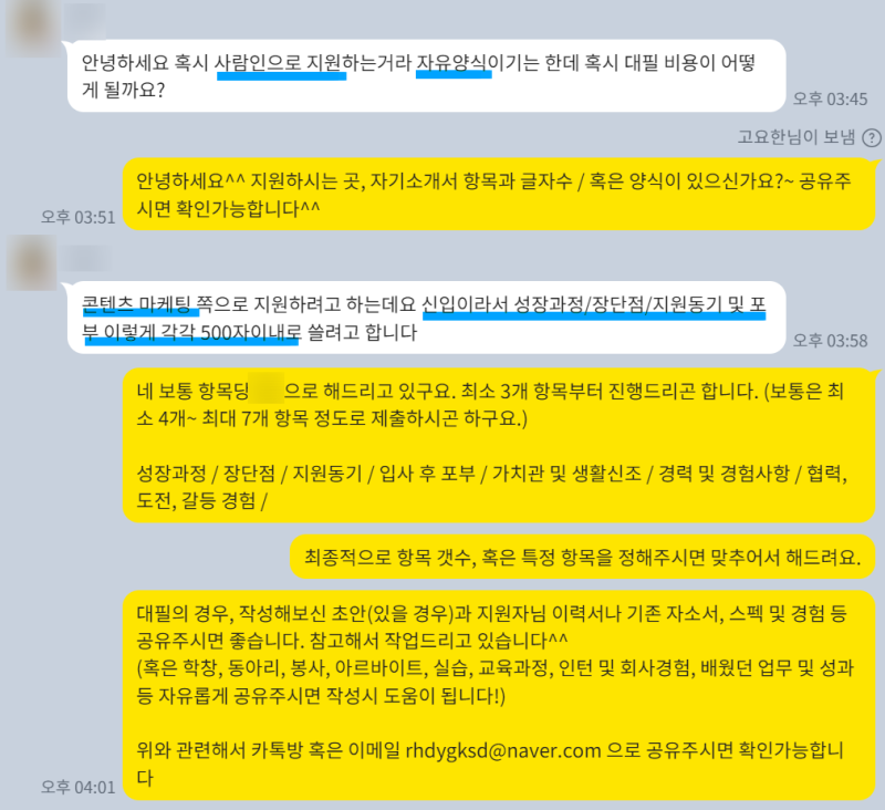 >> 4단계: 자소서 첨삭 및 대필 진행