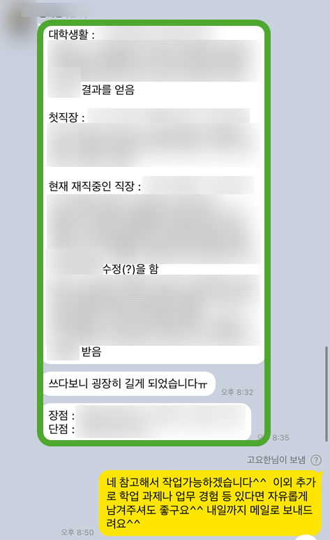 ✍️ 자기소개서 첨삭/대필, 이렇게 진행되었어요!