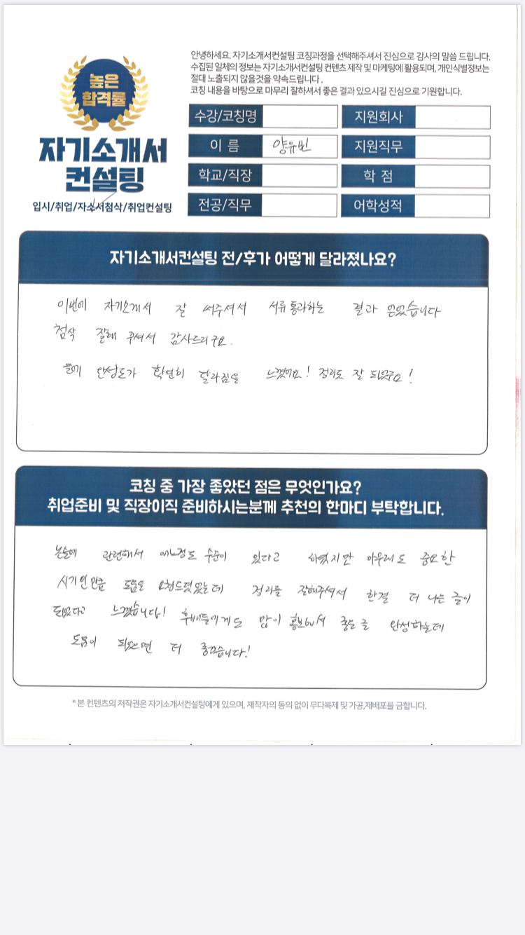 서류통과하였습니다. 자소서 첨삭 후기