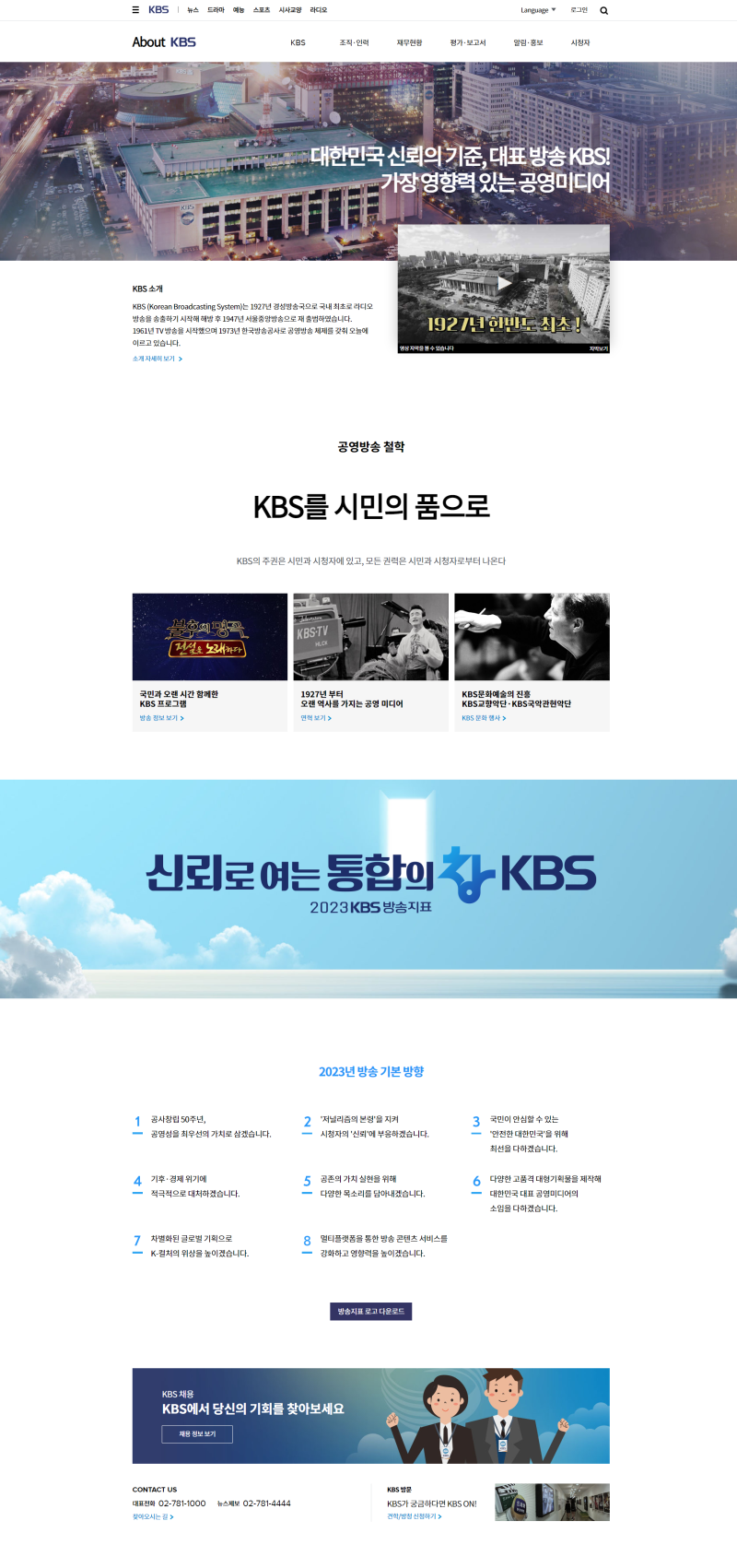 - 비전: 국민의 신뢰와 사랑을 받는 공영방송, 미디어 혁신을 선도하는 미래형 방송사